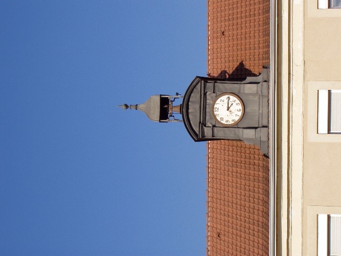 Toujours protégée derrière ses grandes grilles, l’école communale historique a peu changé depuis la fin du XIX° siècle finalement. On distingue cependant sur les anciennes cartes postales quelques éléments qui ont aujourd’hui disparus, comme les cheminées et les évacuations des chauffages au poêle caractéristiques du système de chauffage des salles de classe d'antan. On s’intéresse ici tout particulièrement à cette horloge surmontée d’une cloche que l’on distingue facilement sur les cartes postales et que l’on peut toujours observer aujourd’hui. Autrefois, cette cloche rythmait la vie quotidienne des écoliers ainsi que l’activité du centre-ville.