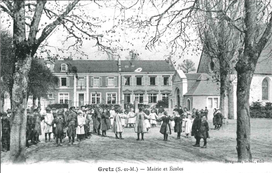 Encore au début du XX° siècle cette place jouait un rôle central dans la sociabilité villageoise et le quotidien des habitants de Gretz mais tout particulièrement pour les élèves de l’école communale. En effet, à défaut d’avoir une vraie cour de récréation, les enfants de l’école envahissaient la place de l’église qui servait alors d'espace récréatif. Aménagée en même temps que la construction de l’école communale, en 1859, la place de l’église constituait un vaste espace encadré par des rangées de tilleuls dont quelques-uns subsistent encore de nos jours.