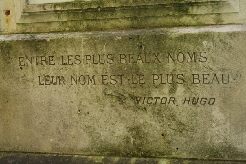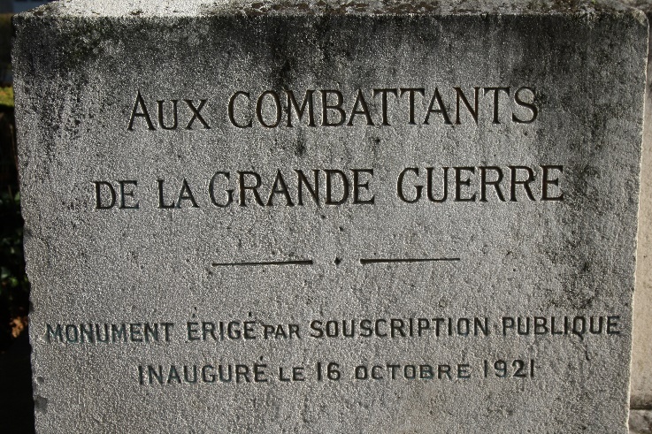 A droite « aux combattants de la Grande Guerre, Monument érigé par souscription publique ». Au-dessus, ces vers magnifiques de Victor Hugo : « Entre les plus beaux noms, leur nom est le plus beau »