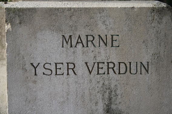 A gauche, 3 noms de victoires : "Marne, Yser, Verdun".